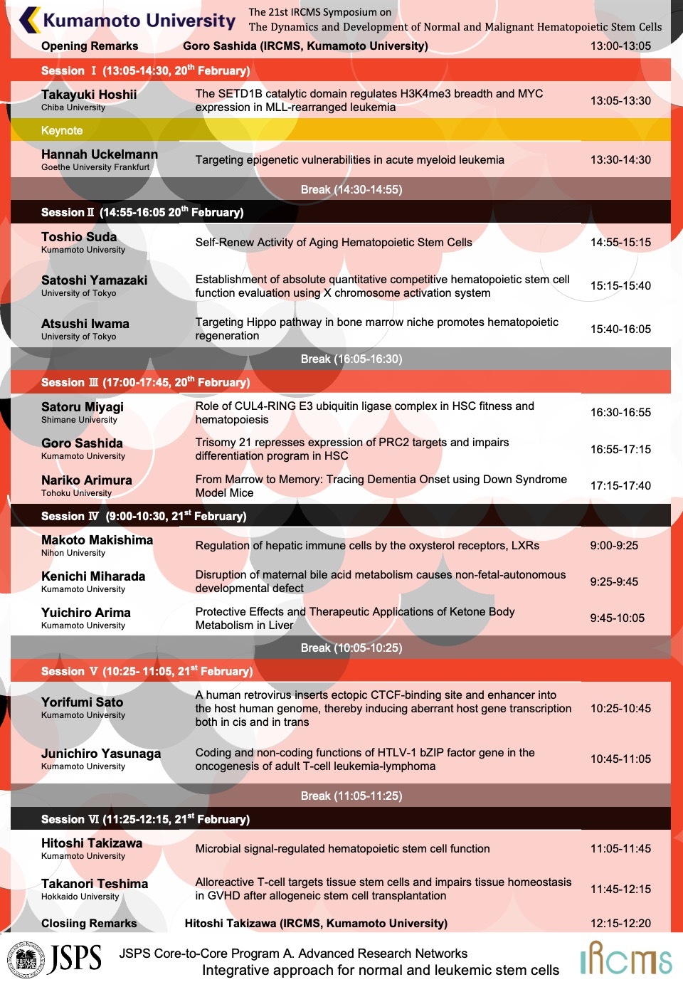 - The 21st IRCMS Symposium on The Dynamics and Development of Normal and Malignant Hematopoietic Stem Cells を開催します