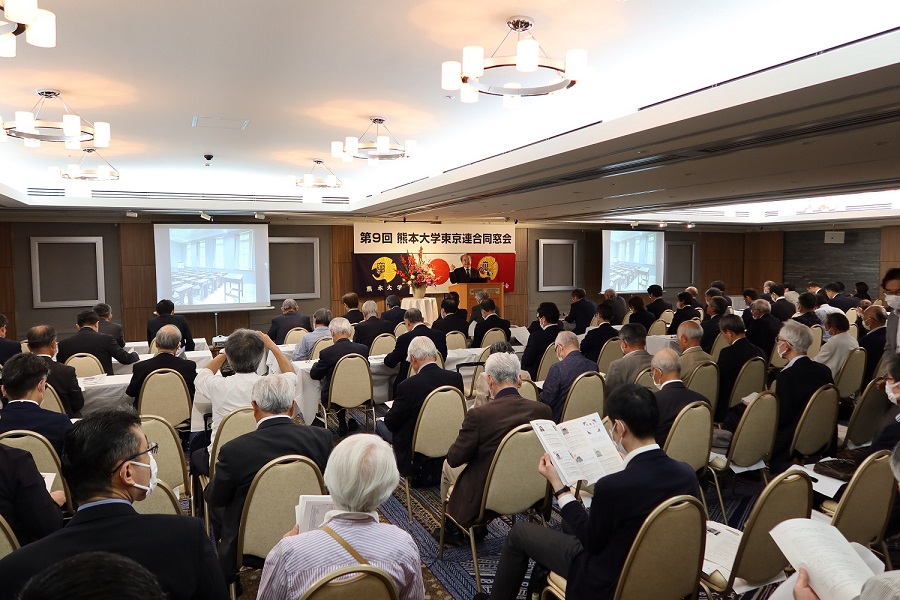 5月27日(土)、第9回熊本大学東京連合同窓会(中上博秋会長)を、東京ガーデンパレス(東京都文京区)において開催しました。コロナ感染症の影響を受け4年ぶりの開催となった今回は、関東地区の同窓生、同窓会本部の関係者、大学関係者の約143名が参加しました。