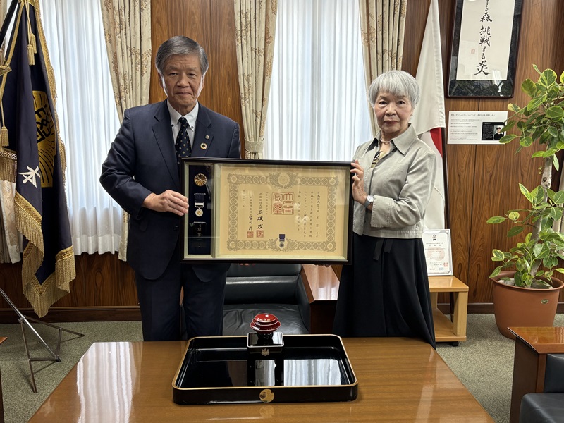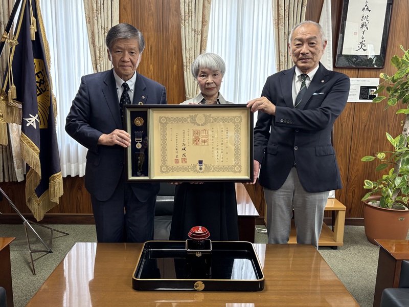 令和7年10月6日に、熊本大学基金へのご寄附による多大なご貢献に対し、紺綬褒章(※)を受章された田尻節子様への伝達式を執り行いました。